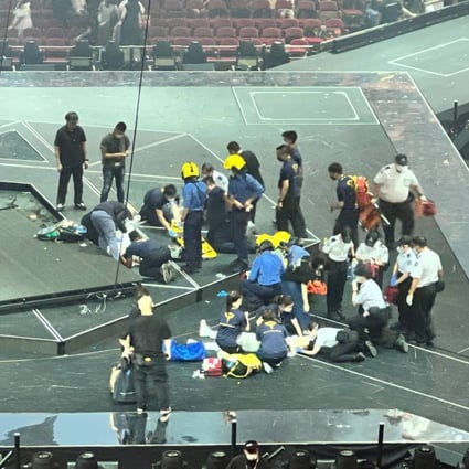 Screengrab from a video shows a giant overhead video screen falling during a performance by boy band Mirror at the Hong Kong Coliseum on Jul 28 2022. This article contains embedded video that may be disturbing to some readers. 1 day agoTwo dancers were hurt after being struck by a falling video panel on stage during a concert by the popular boy band MIRROR late on Thursday prompting the government to suspend the remaining eight.
